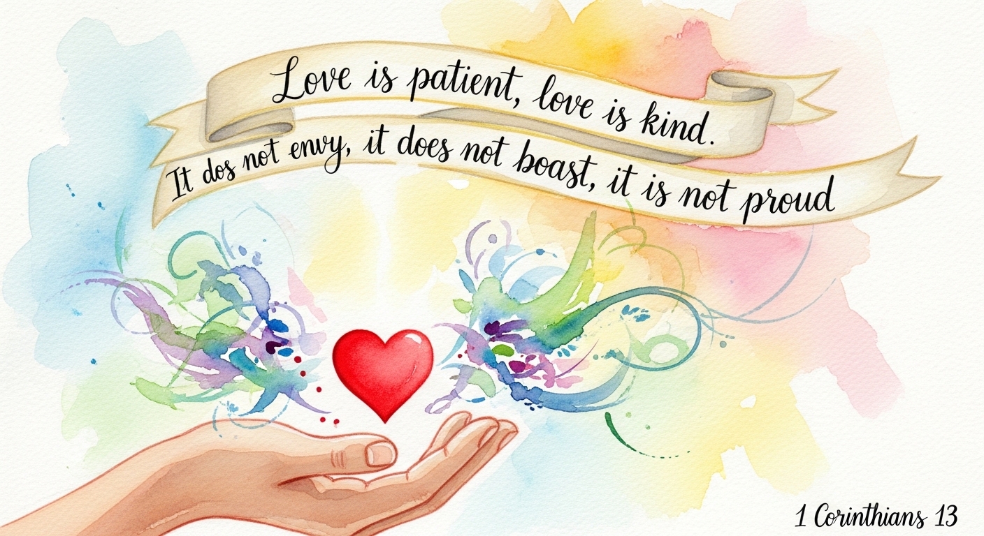 “4 사랑은 오래 참고 사랑은 온유하며 시기하지 아니하며 사랑은 자랑하지 아니하며 교만하지 아니하며”