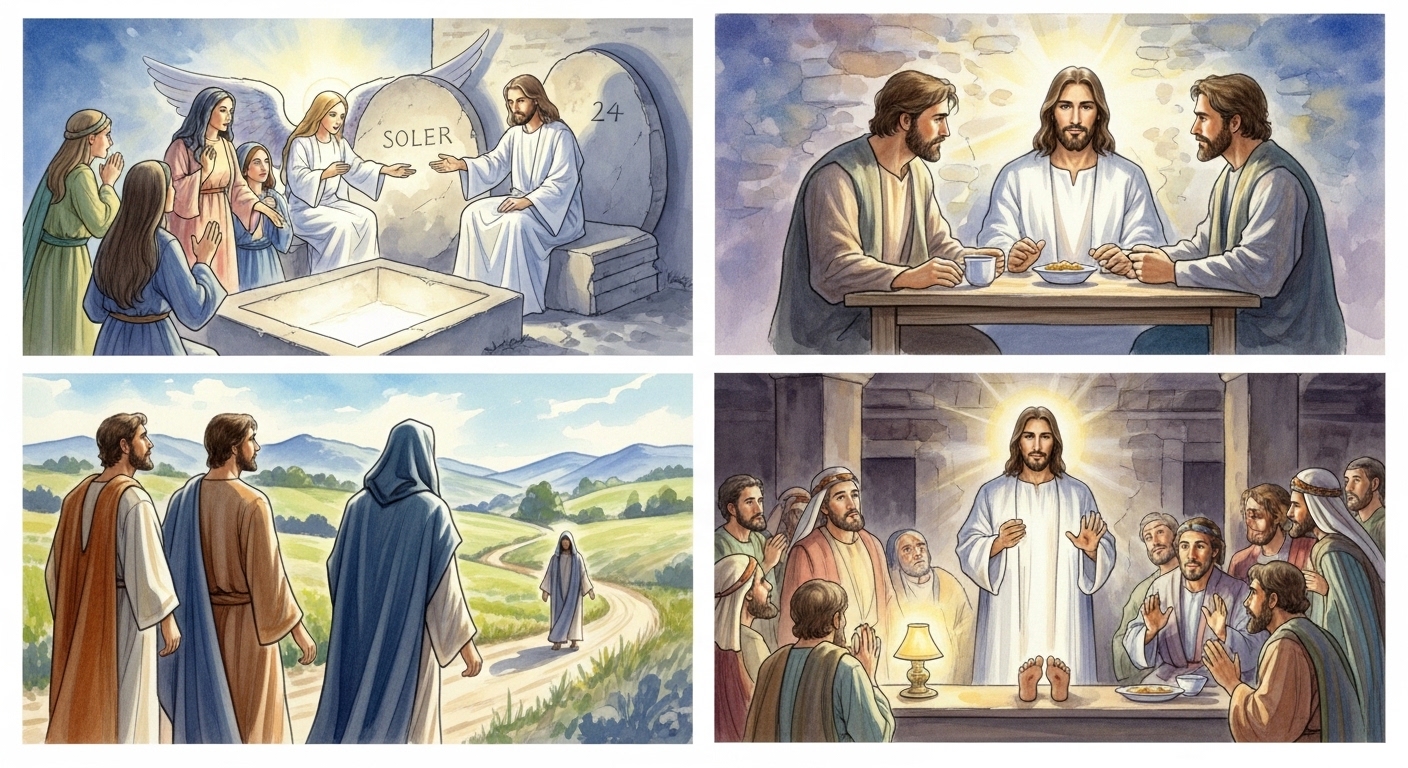 “그러자 그들의 눈이 밝아져 예수님을 알아보았습니다. 순간, 예수님께서는 사라지셨습니다. 그들이 서로 이야기했습니다. “길에서 예수님께서 우리에게 말씀하시고 성경을 풀어 주실 때에 우리의 마음이 불타는 것 같지 않았는가?”